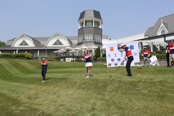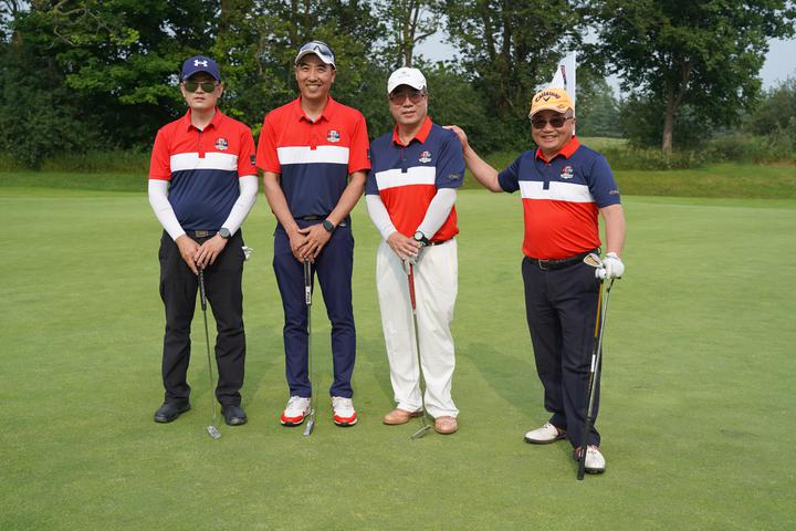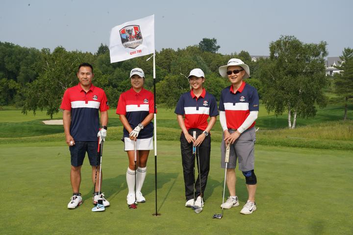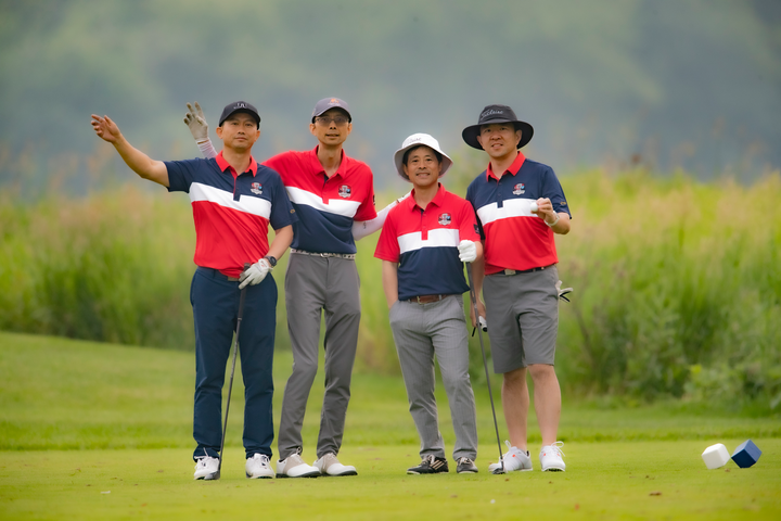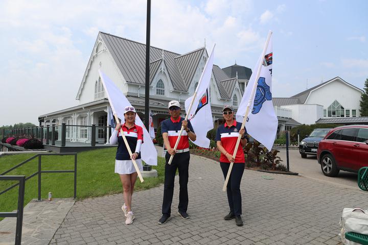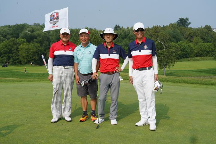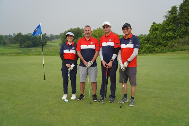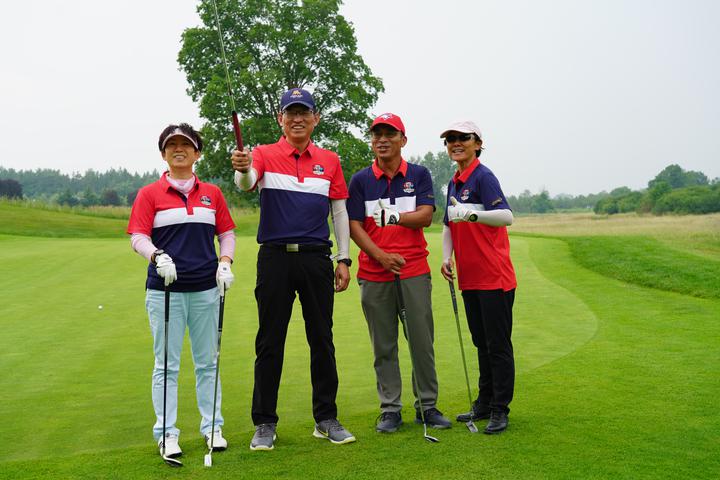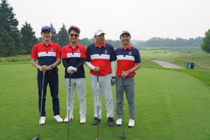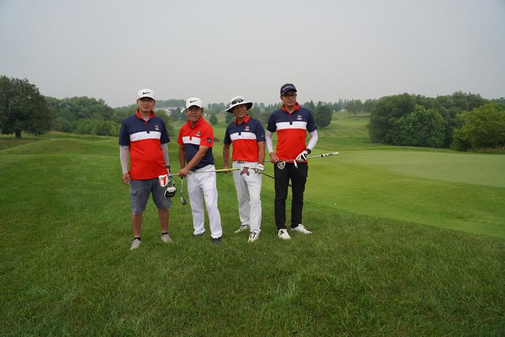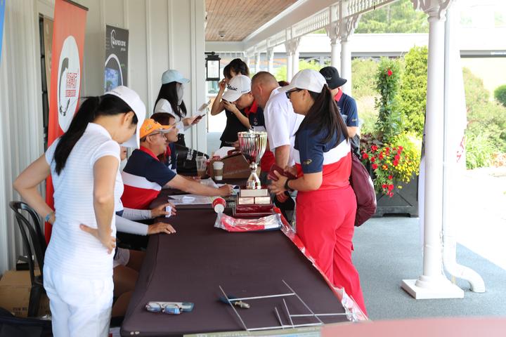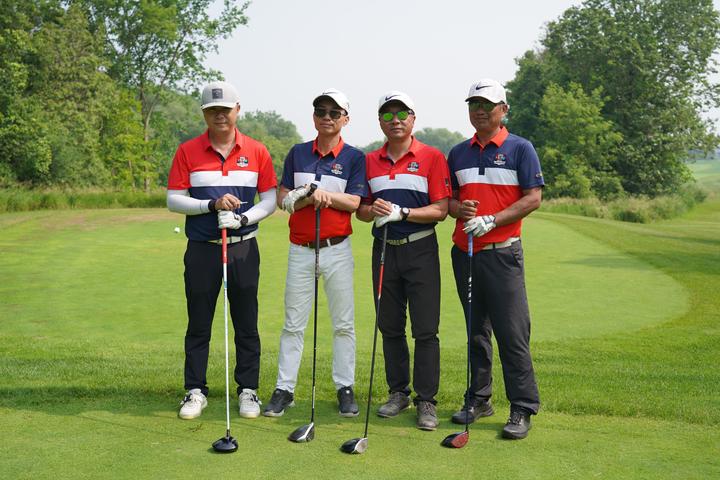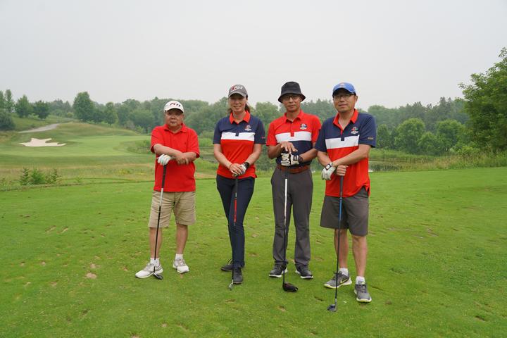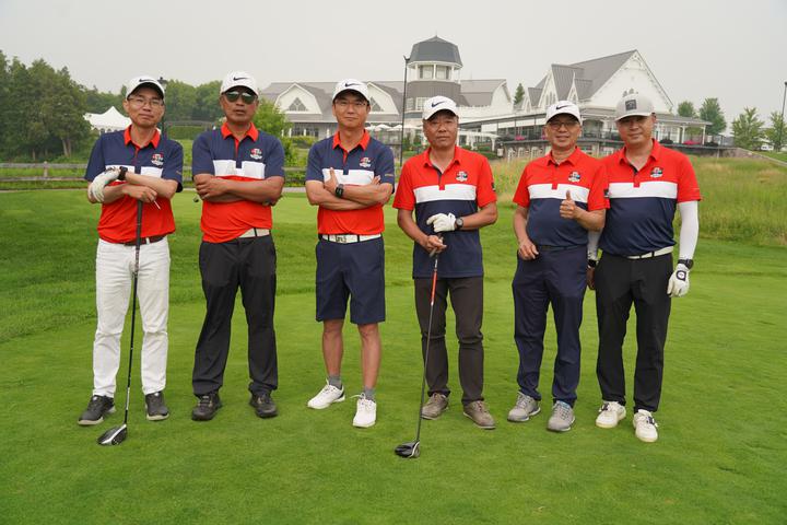 相隔三年再挥杆一起比赛,大家都是提前早早来到Angus Glen Golf Course球场,先登记领取今年比赛的新球服。比赛分两个队,牛队(Buffalo)和熊队(Grizzle),今年设计的队服也是按照著名的莱德杯(Ryder Cup)决赛的服装设计的,让两个队感觉你中有我、我中有你,完全体现友谊第一比赛第二的快乐高尔夫精神。