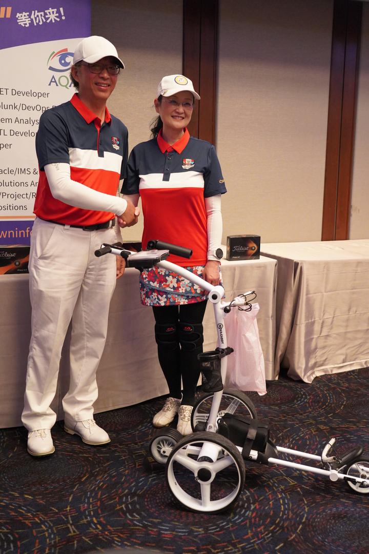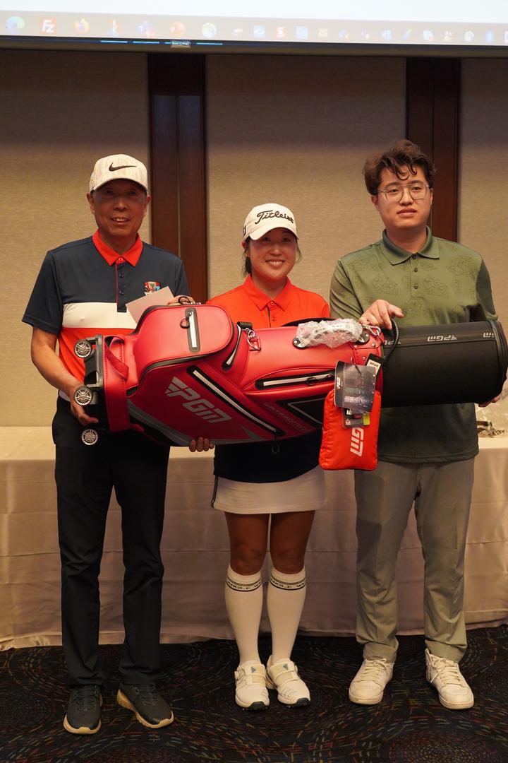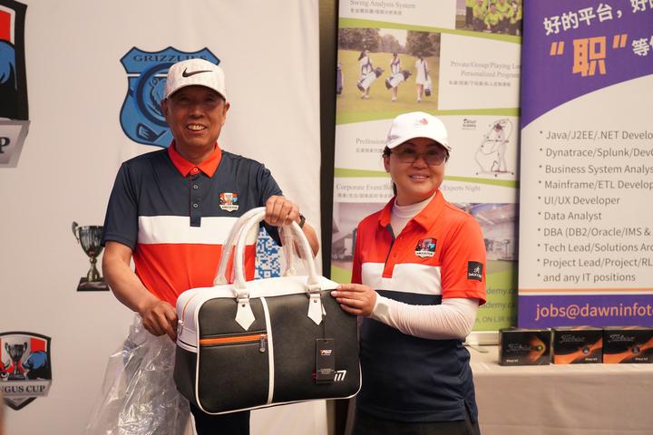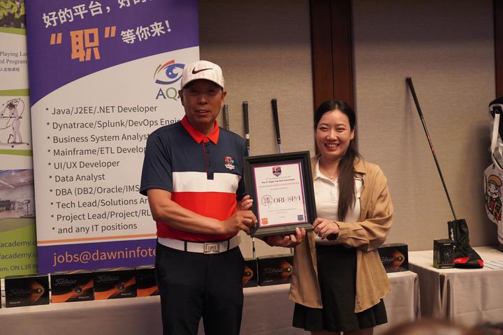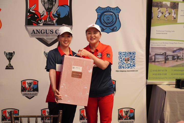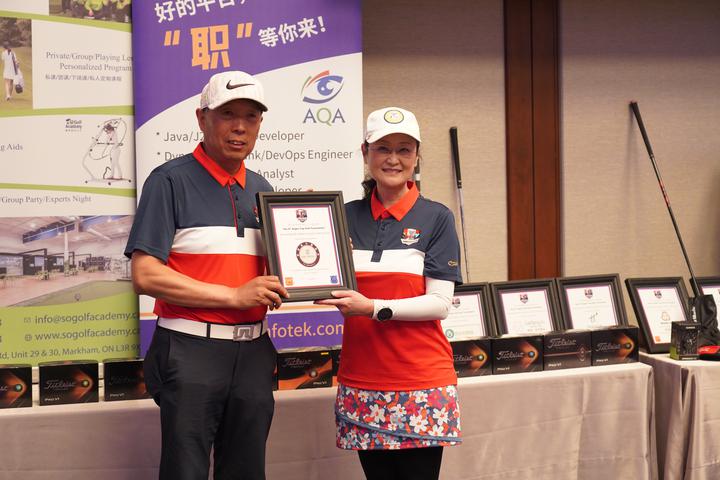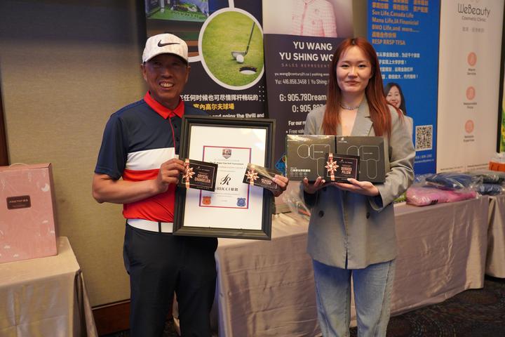 Pan Pacific Toronto 赞助的最高等的Scotty Cameron Putter 由于总裁 Tracy Feng (左)为 幸运的黄晓英发奖(右)